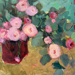 I am drawn to the outdoors for quiet, fresh air and the expansive view reminding me life is bigger than my little world. There I witness nature unveiling the beauty of life, always dying and renewing. Delicate, yet resolute. The Garden lyrics series is inspired by these experiences within nature and memories of childhood summers at the lake. I remember standing beneath the birch trees on the water’s edge, leaves wavering in the breeze as the water made its rhythmic lapping sound upon the shore and sunlight danced upon the water. It’s a memory that brings peace to my soul and inspires these works. Each canvas begins with the often frenetic and free movement of paint. Layers progress to reveal form, yet remain ambiguous. Show growth and decay. Random yet predictable movement. Form and mass juxtapose with the delicacy of line as I seek to find a rhythm that imbues an overall peacefulness.